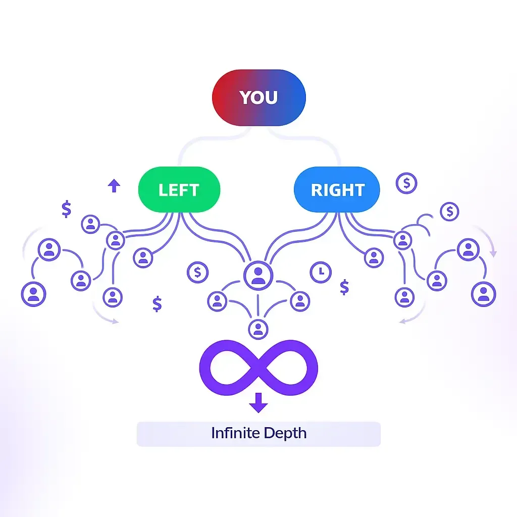 The game-changer? You earn from infinite levels deep in your network, not just your direct referrals. Your points regenerate every week with zero earning caps. As your community grows, your residual income grows automatically.